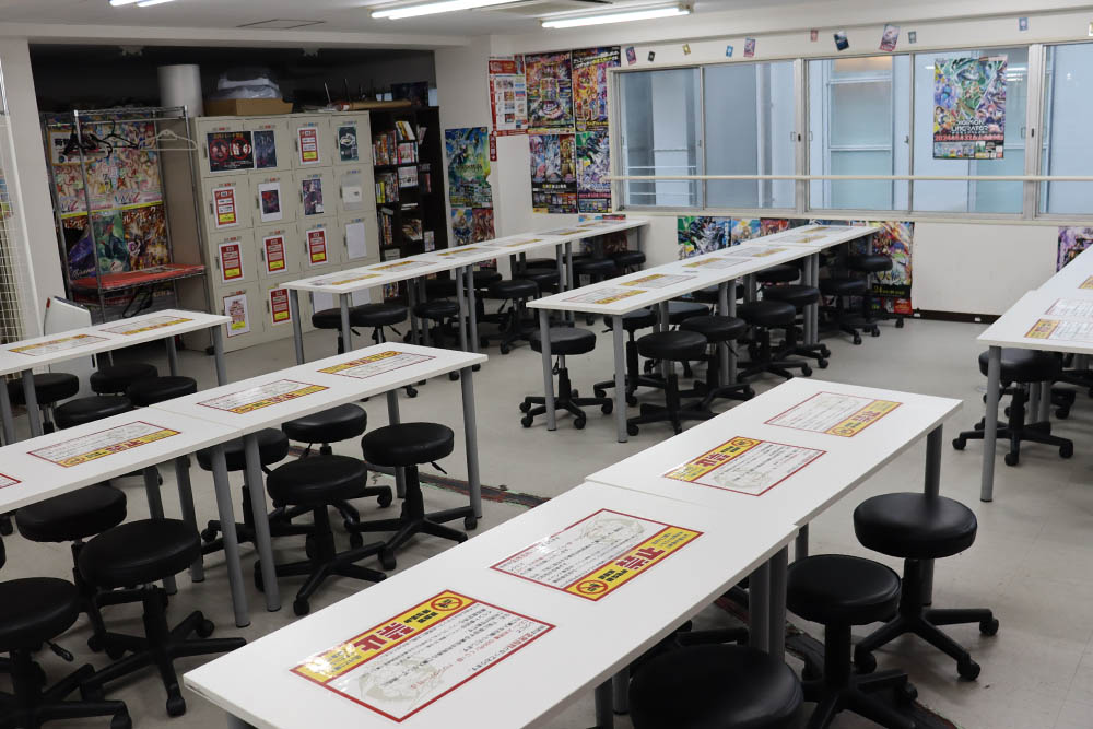 当店では、店頭販売や買取を行いながら、店内にデュエルスペースを設けております。500円で閉店時間まで楽しむことができ、ドリンクバーも自由にご利用いただけます。また、シャイニング太郎本人が運営しており、くじまたはガラポンを無料で1回引くことができるため、お得にカードをGETすることができます!